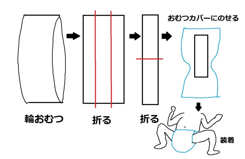 最初はお試しで「布おむつトライアルセット」を購入。おむつカバー1つと、輪おむつ2つだけのセット↓です。布おむつを2枚使ったら洗濯して乾くまでの間、紙おむつにしました。
